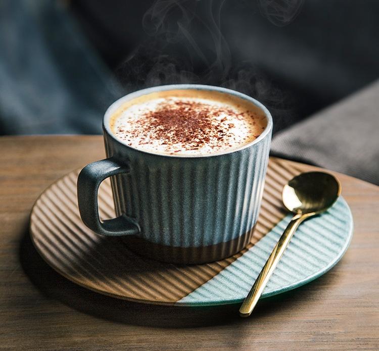 Each set includes 1* coffee cup and 1 saucer and 1 Spoon,Ceramic Coffee Cups, Coffee Cup and Saucer Set, Pottery Coffee Cups, Cappuccino Coffee Mug, Coffee Cup for Sale, Tea Cup, White / Green / Blue / Yellow