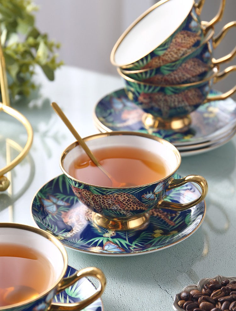 Creative Leopard Ceramic Coffee Cups, Unique Tea Cups and Saucers in Gift Box as Birthday Gift, Beautiful British Tea Cups, Creative Bone China Porcelain Tea Cup Set