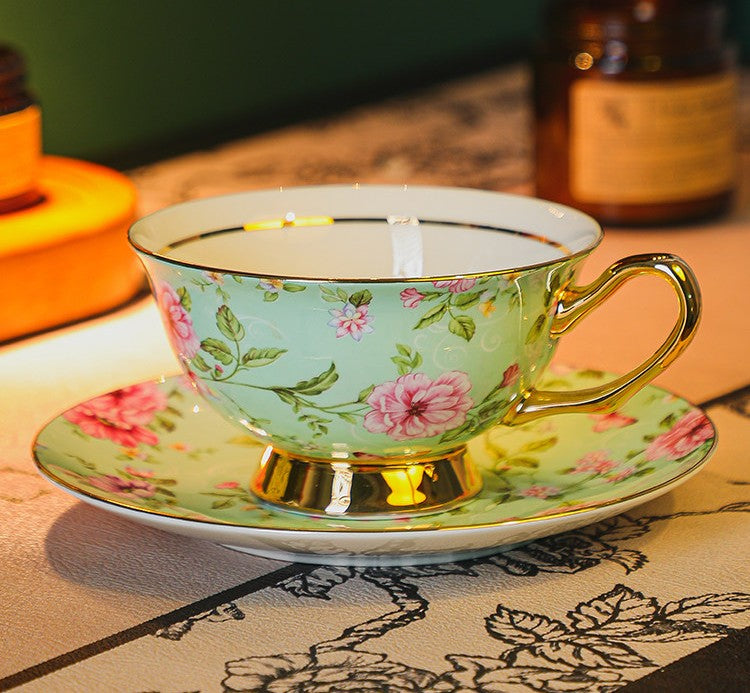 Floral Porcelain Tea Cup and Saucer Set, Afternoon British Tea Cup with Saucer, Traditional English Tea Cup and Saucer Set, Ceramic Coffee Cup with Saucer