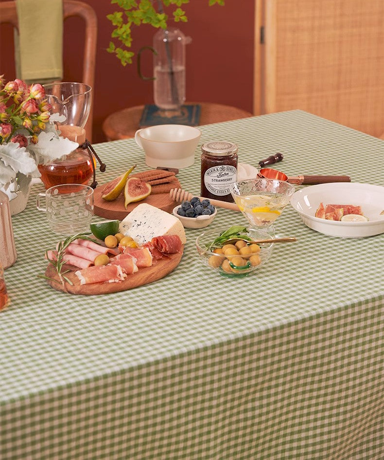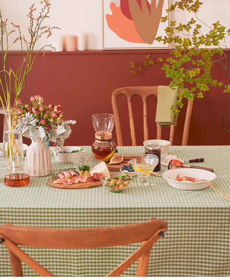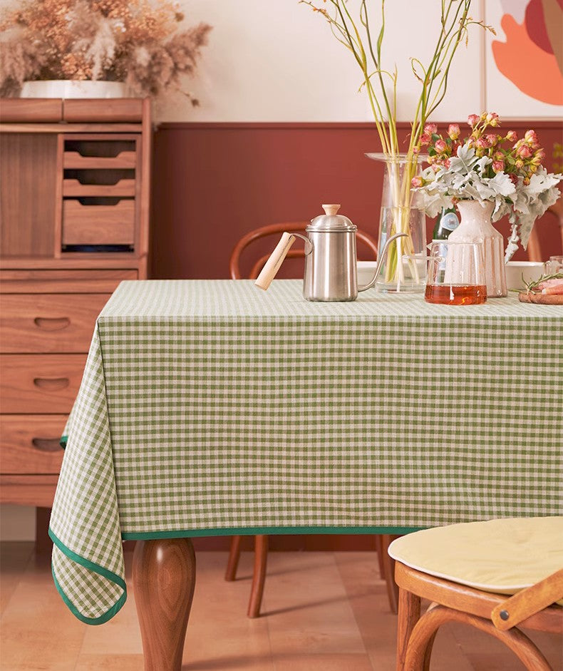 Green Rectangle Tablecloth for Dining Room Table, Cotton Chequer Rectangular Tablecloth, Square Tablecloth for Coffee Table, Farmhouse Table Cloth, Wedding Tablecloth