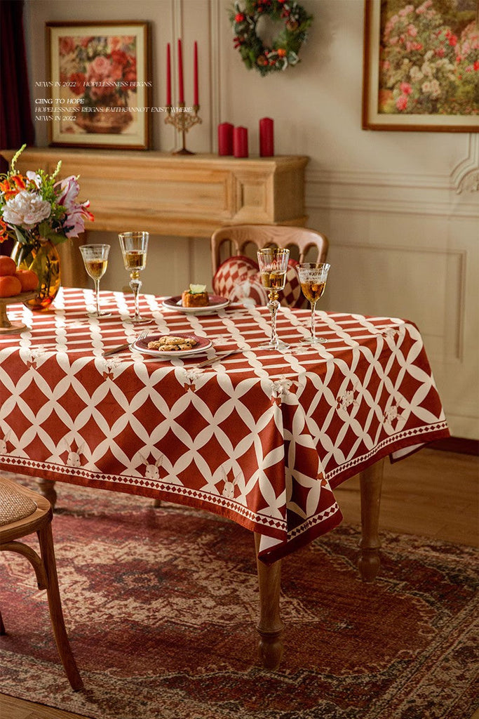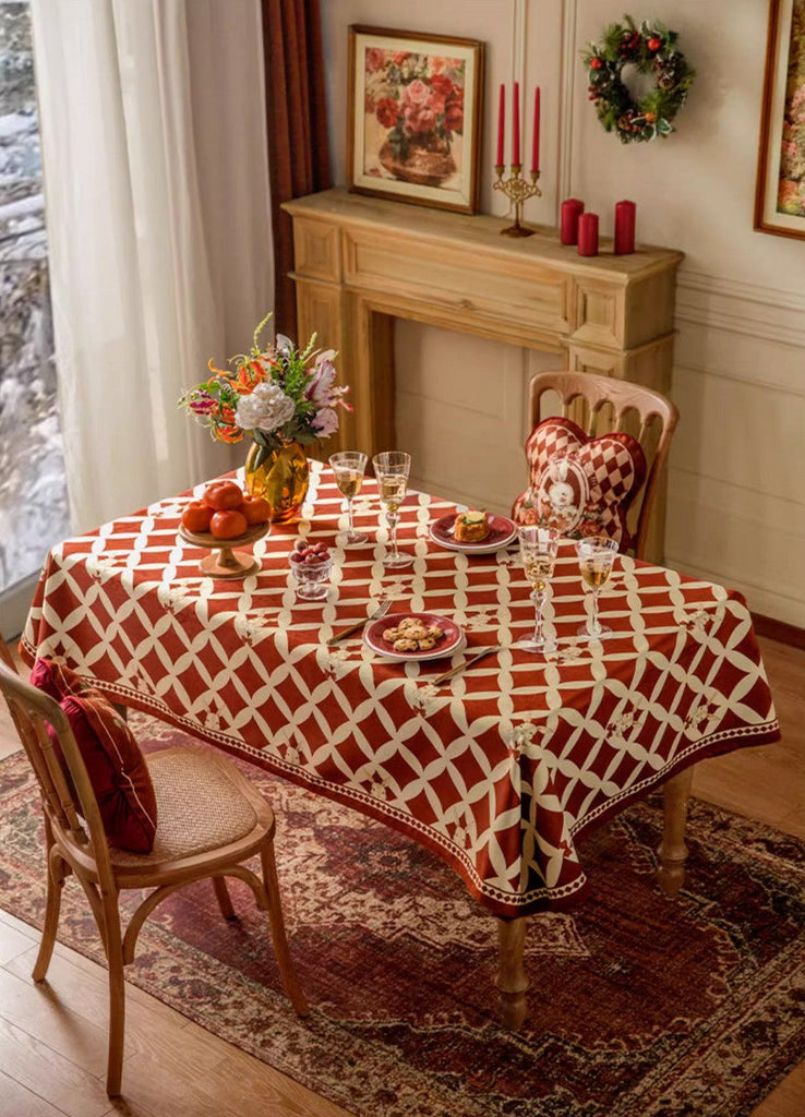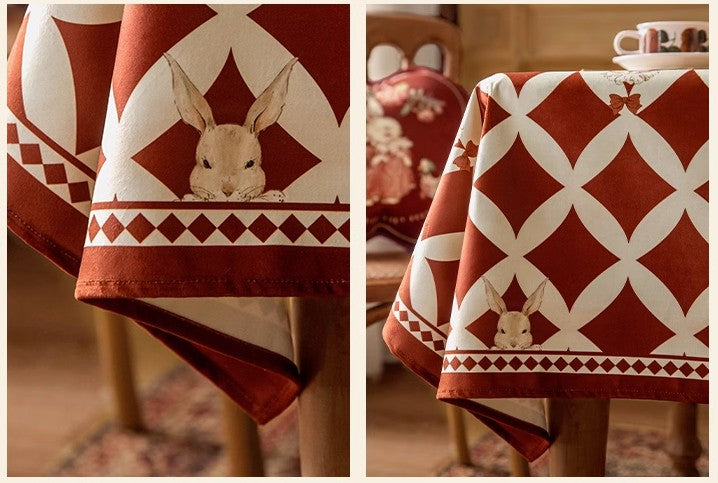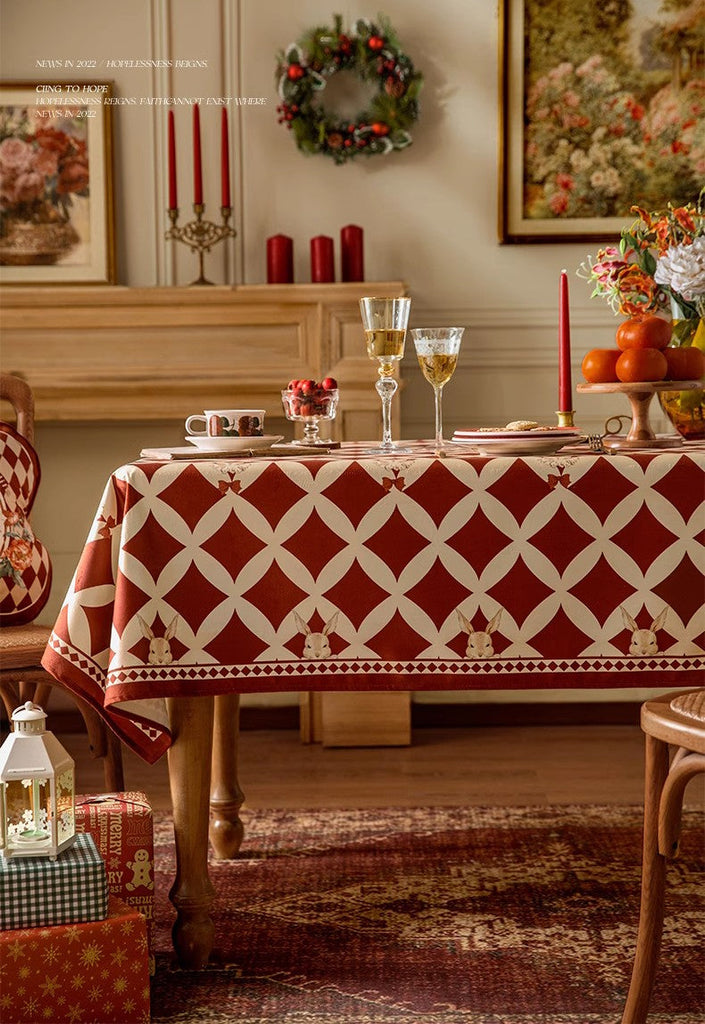 Holiday Red Tablecloth for Dining Table, Rabbit Pattern Table Cover for Dining Room Table, Modern Rectangle Tablecloth for Oval Table
