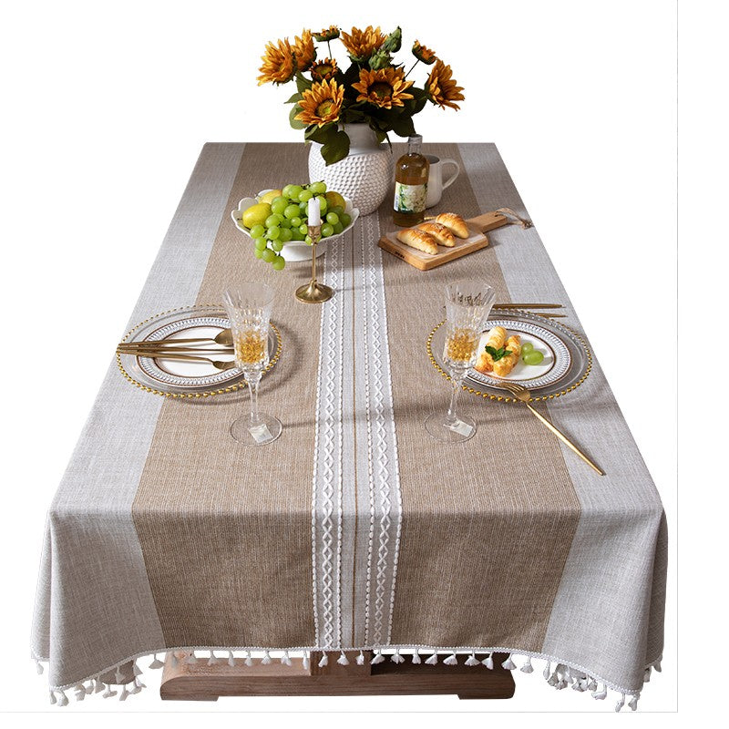 This unique natural flax table cloth is suitable for dining table, tea table, piano cover, bedstand, etc.