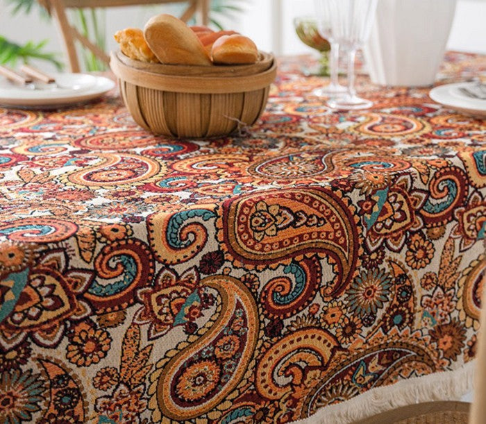 Oriental Rectangular Table Covers for Coffee Table, Bohemian Rectangular Tablecloth for Oval Table, Modern Linen Tablecloths