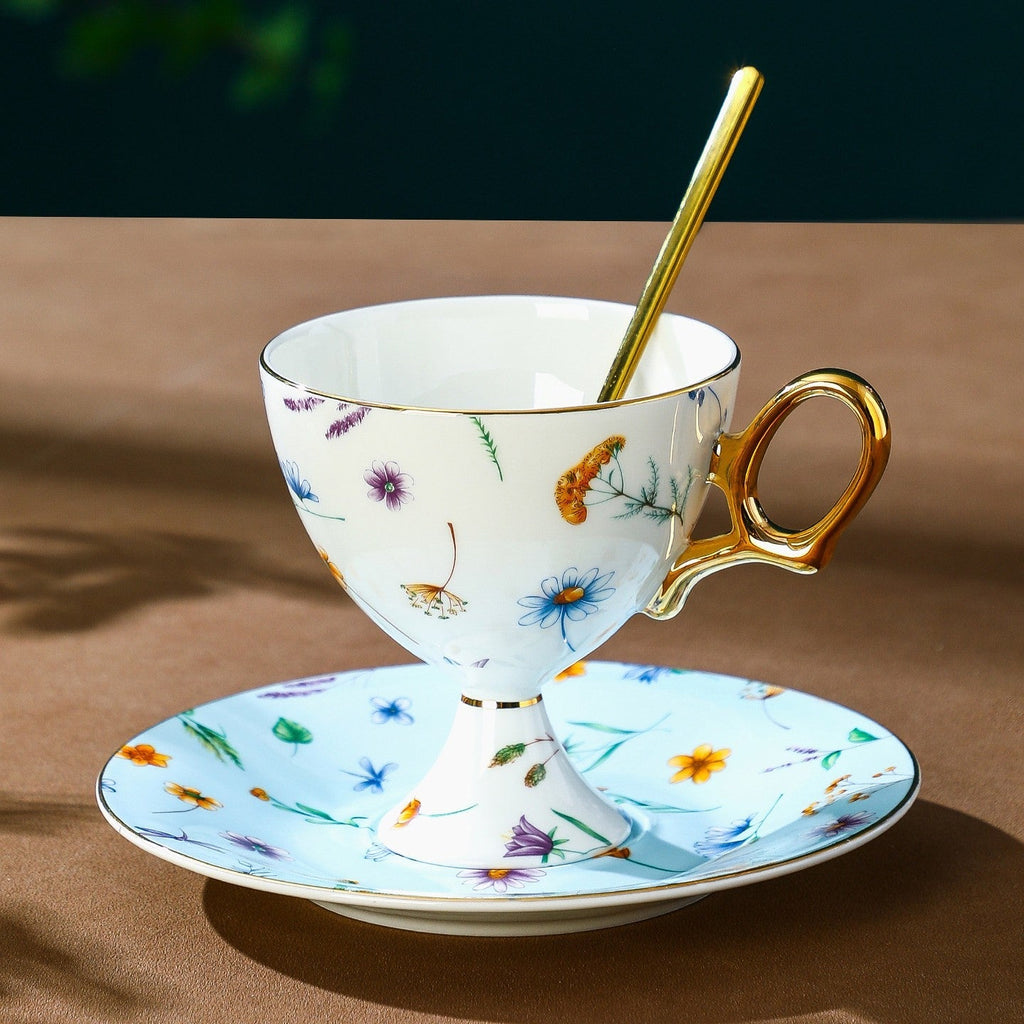 Porcelain Tea Cup and Sucer Set, Flower Ceramic Tea Cup and Saucer, Floral Tea Cup and Saucer Set in Gift Box, Elegant British Ceramic Coffee Cup with Sucer