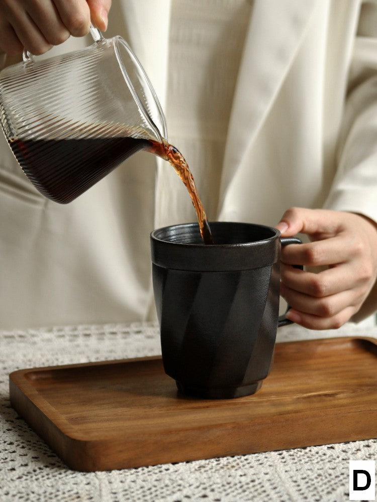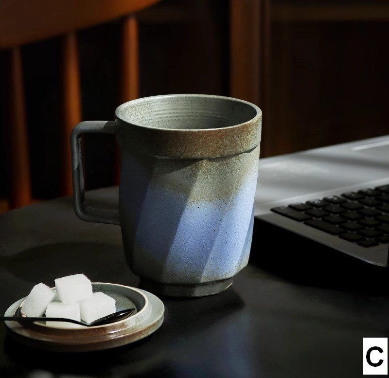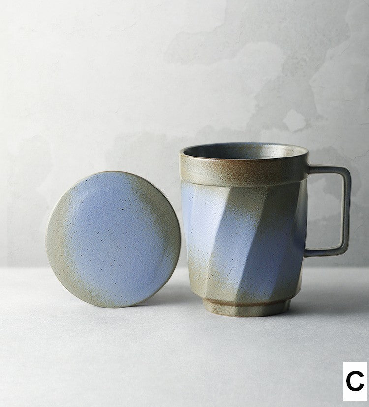 Large Modern Handmade Pottery Coffee Cup, Creative Brown Green Blue Black Ceramic Coffee Mugs, Large Unique Tea Cup, Large Capacity Coffee Mug with Cover