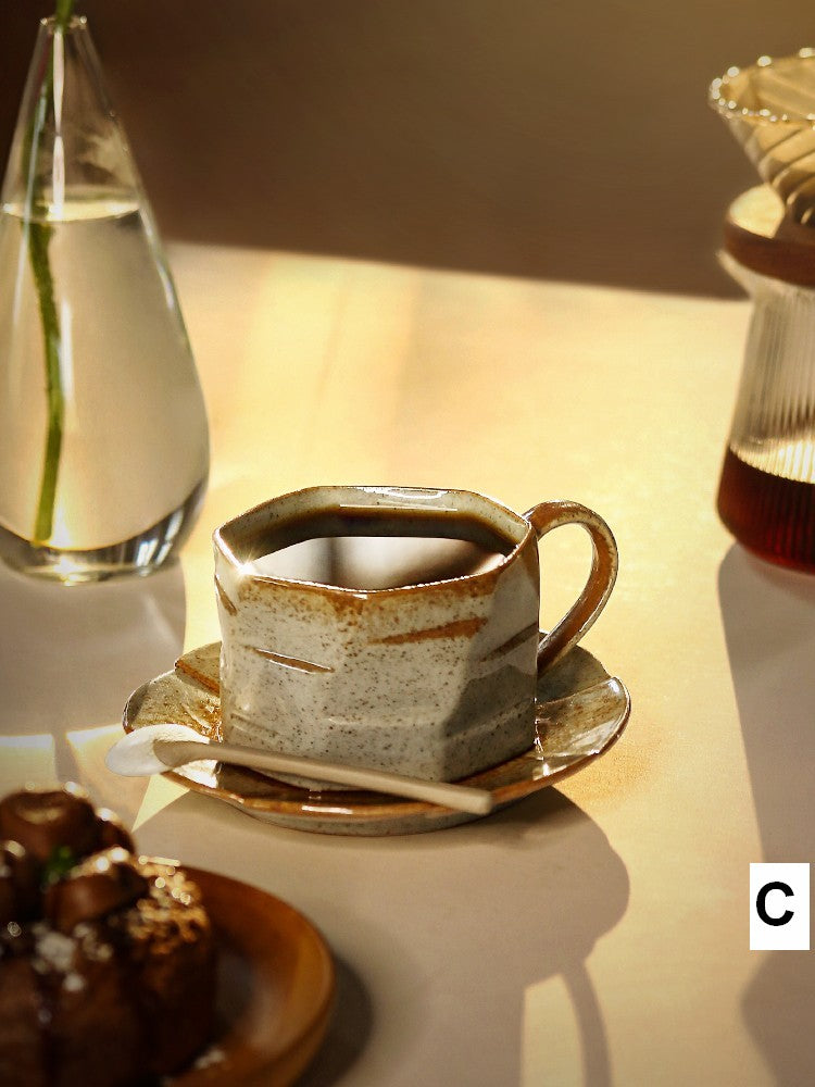 Modern Handmade Pottery Coffee Cup, Creative Ceramic Coffee Cup with Saucer, Unique Tea Cup and Saucer, Tea Cup Set for Afternoon Tea