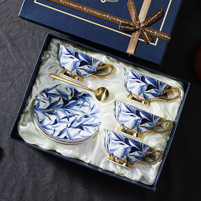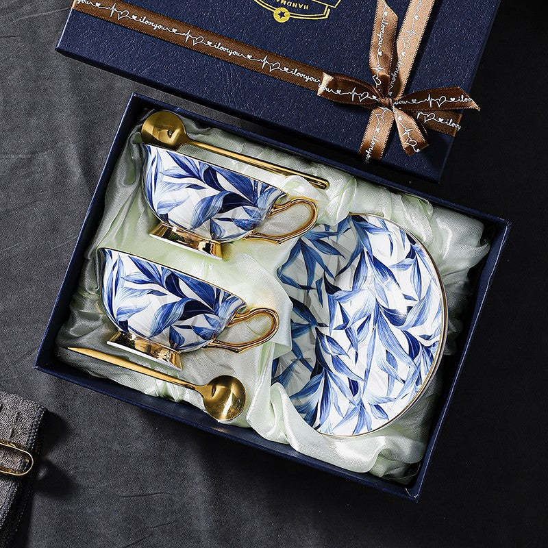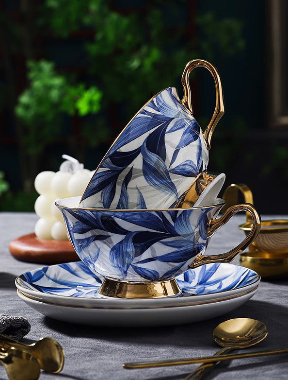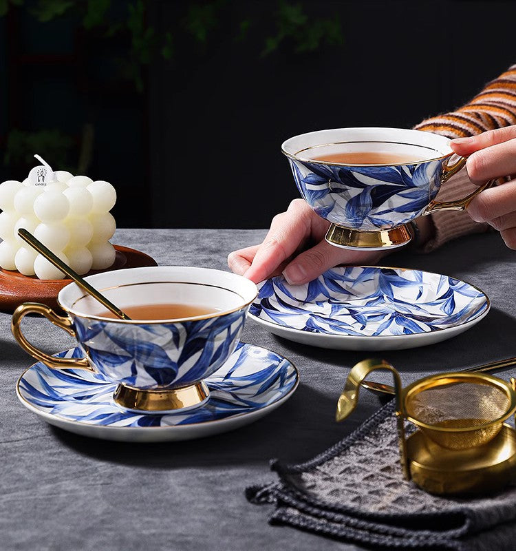 Unique British Tea Cup and Saucer in Gift Box, Blue Porcelain Tea Cup Sucer Set, Elegant British Ceramic Coffee Cups