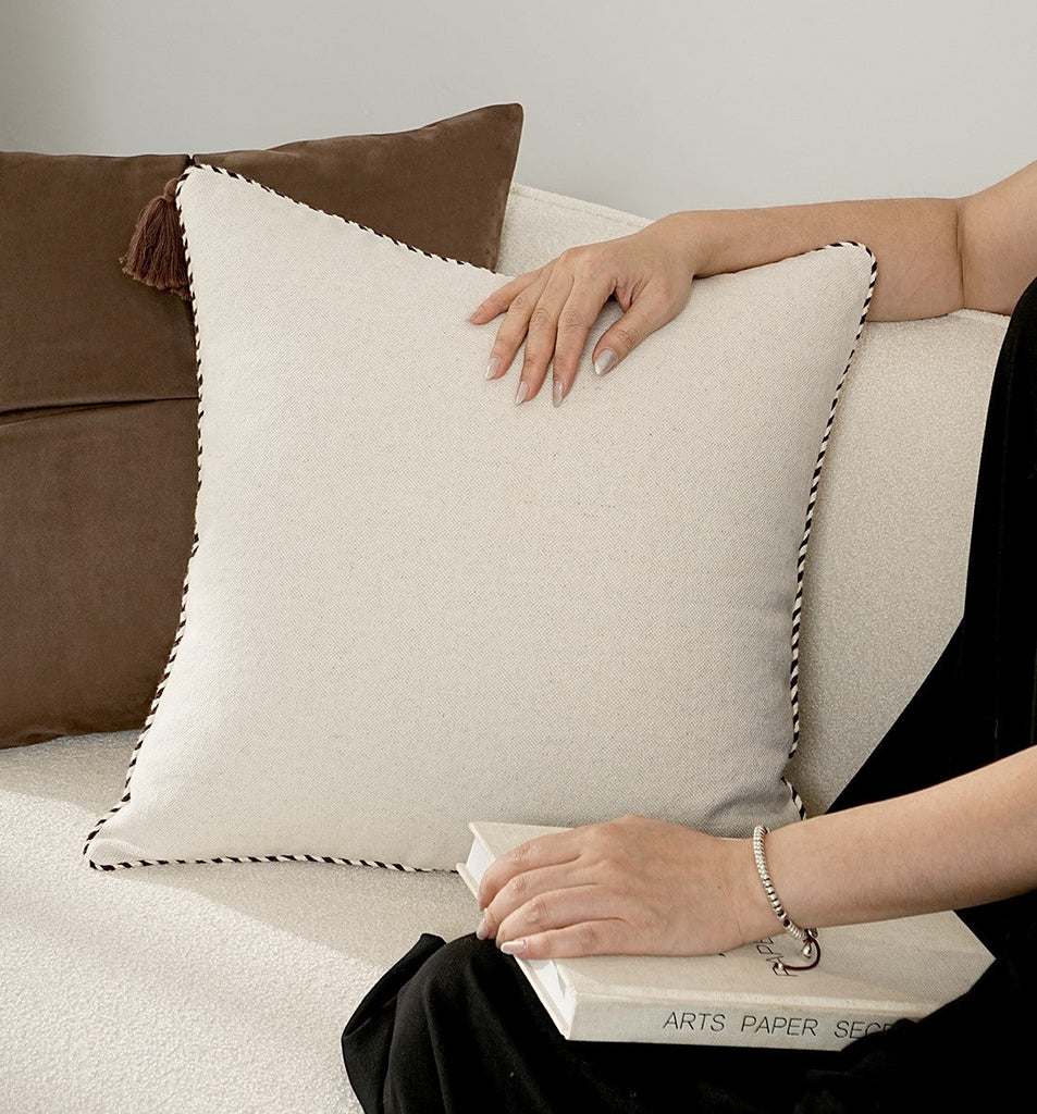 All pillow covers are sewn professionally, over-locked with finished edges to prevent fraying and has invisible zipper enclosures. This provides long lasting, durable covers that will stay straight and beautiful over time, which makes for a clean professional look.