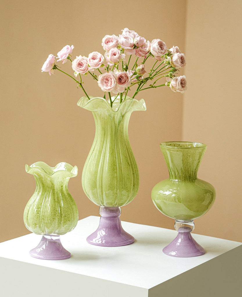 This vase is handmade. Minor imperfections such as bubbles, dark spots, inclusions, color variations, or small particles may naturally occur. These are inherent to the craft, not defects, and do not affect use. Each piece is unique - none are exactly alike.