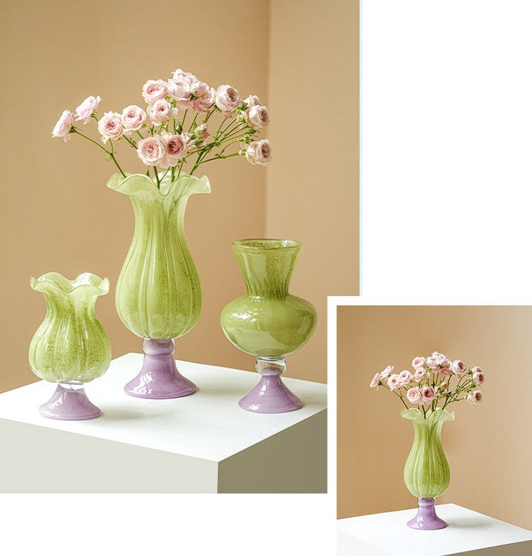This colored glaze glass vase (Liuli Vase) is poetry captured in glass, bringing a room to life with its inner glow. Bathed in natural light, it doesn't just sit on a table - it comes alive, scattering soft prisms of colour across the walls like fragments of a dream. Its smooth, luminous surface catches the eye, offering a moment of quiet elegance in a busy space.