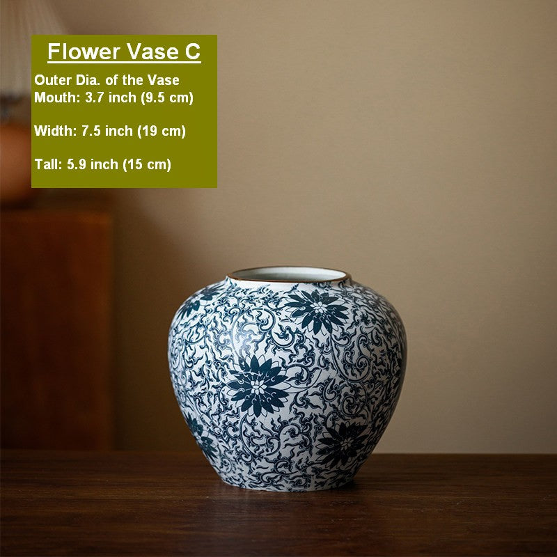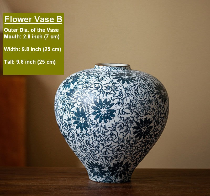 Vintage Bouquet Flower Vases, Centerpiece on Dining Table, Large Blue Flower Vase on Table, Handmade Porcelain Flower Vases Urn, Water Holding Flower Vases