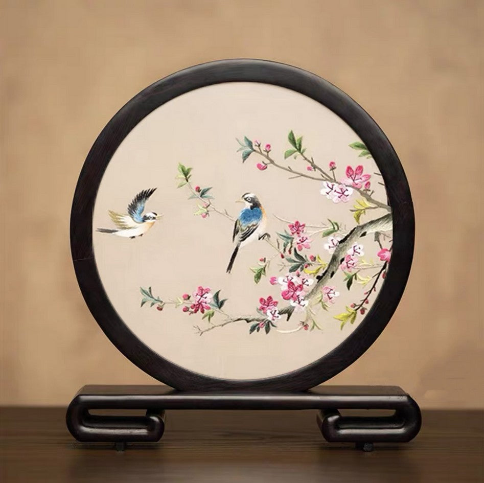 Exclusive Business Present, Flower and Bird Embroidered Decor, Unique Birthday Gift, Traditional Chinese Suzhou Embroidery Ornament, Premium Souvenir