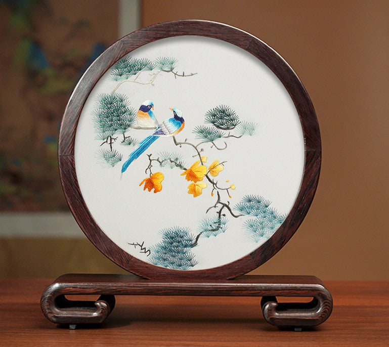 Flower and Bird Embroidery Ornaments, Unique Birthday Gift, Traditional Chinese Suzhou Silk Embroidered Ornament, Premium Souvenir, Exclusive Business Presents