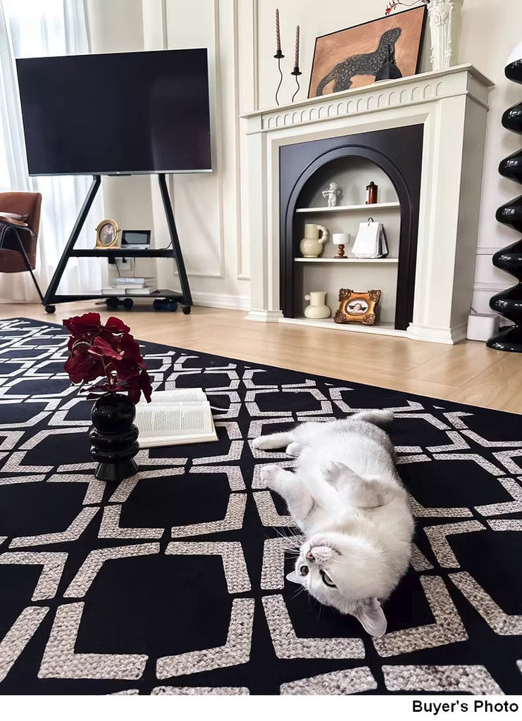 Abstract Contemporary Rugs for Bedroom, Modern Area Rugs under Sofa, Modern Black Rugs for Living Room, Dining Room Floor Rugs, Modern Carpets for Office-Grace Painting Crafts
