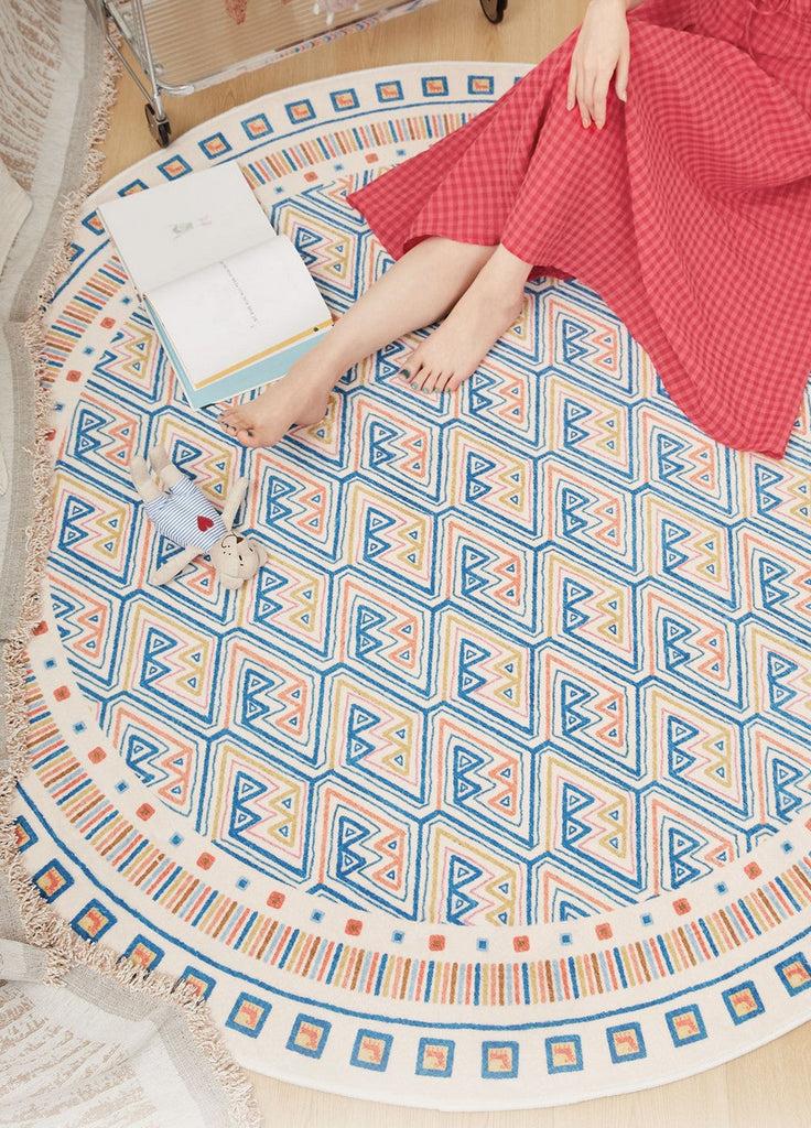 Abstract Contemporary Round Rugs for Dining Room, Circular Modern Rugs for Bathroom, Geometric Modern Rug Ideas for Living Room, Modern Rugs for Children's Room
