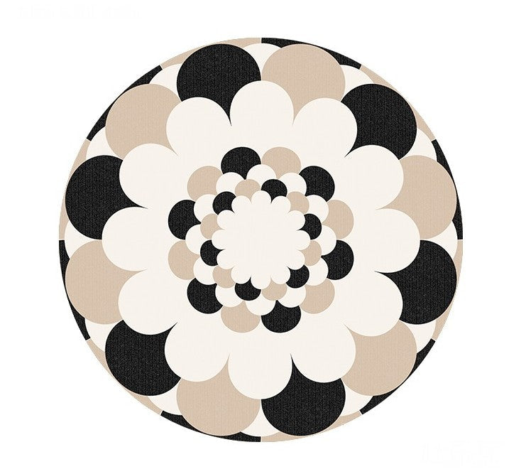Abstract Contemporary Round Rugs, Modern Rugs for Dining Room, Flower Pattern Modern Rugs for Bathroom, Circular Modern Rugs under Coffee Table