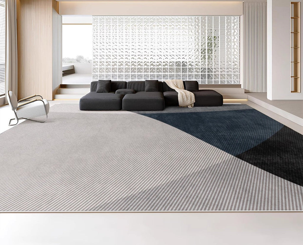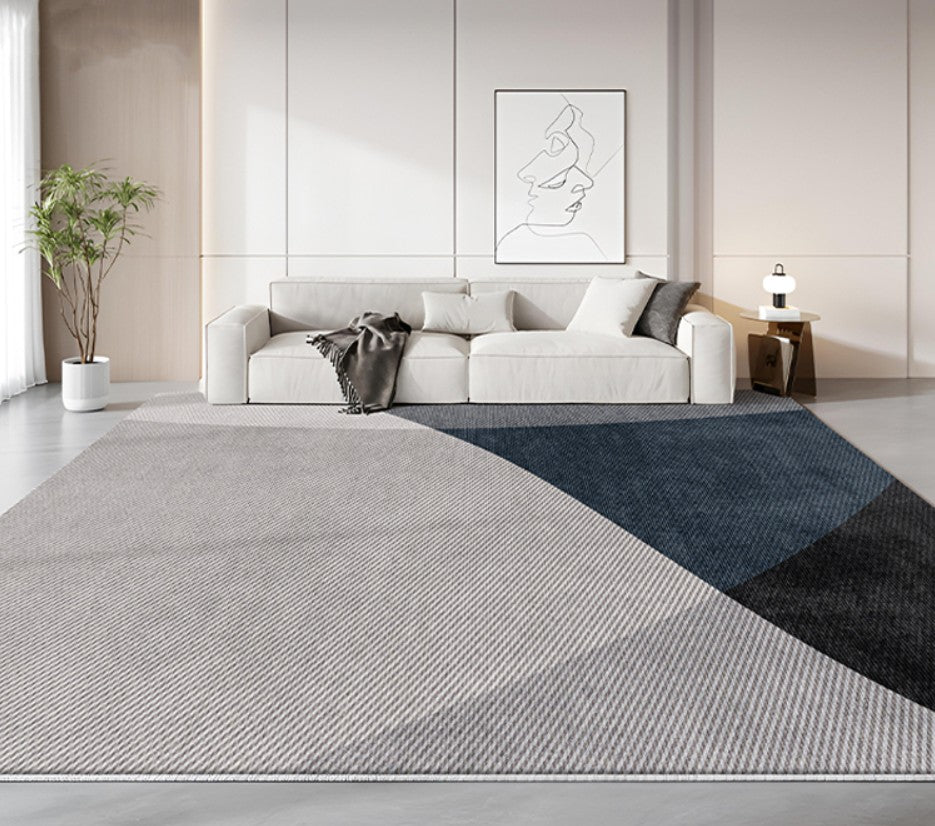 Geometric Contemporary Rugs Next to Bed, Blue Contemporary Modern Rugs, Modern Rugs for Living Room, Contemporary Rugs for Dining Room