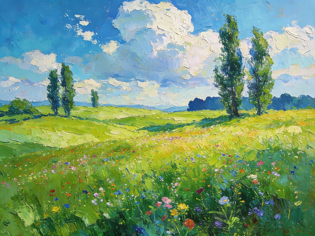 Hand Painted Canvas Art, A Hillside Awash with Wildflowers in Spring, Heavy Texture Artwork, Original Oil Paintings, Small Landscape Paintings, Small Paintings on Canvas-Grace Painting Crafts