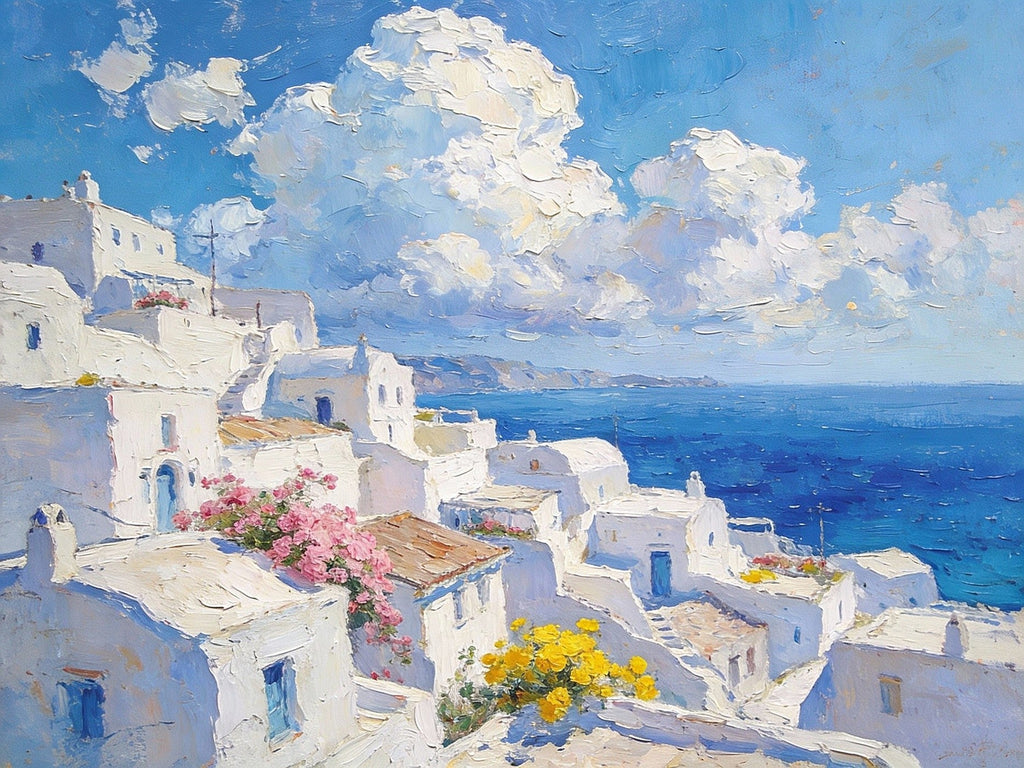 Original Canvas Paintings, Azure Dreams of the Aegean, Small Oil Paintings on Canvas, Palette Knife Artwork, Landscape Oil Paintings, Hand Painted Wall Art-Grace Painting Crafts