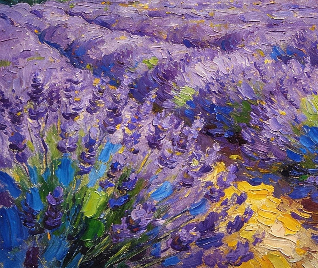 Provence - Lavender Fields and a Slumbering Village, Impasto Paintings, Original Small Paintings on Canvas, Small Oil Paintings, Hand Painted Canvas Art, Landscape Canvas Paintings