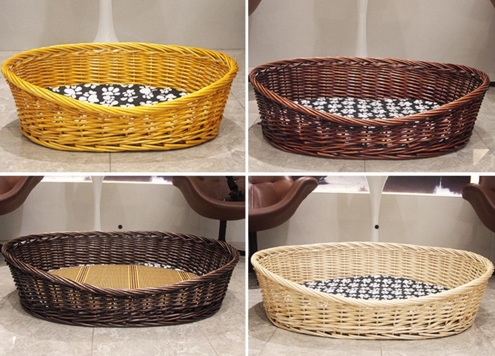 Natural Wicker Dog Bed with Washable Cushion for Indoor Cats and Dogs, Hand woven Rattan Cat Beds