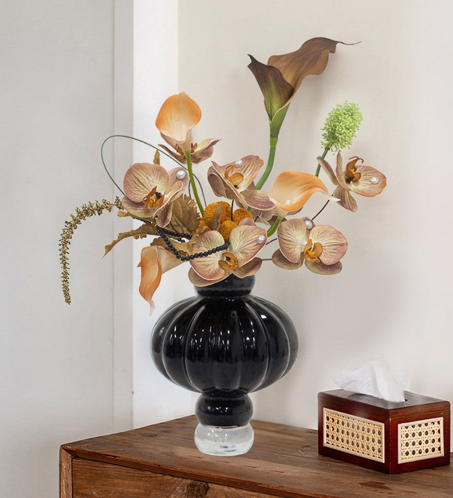 Black Glaze Vase, Contemporary Vases for Modern Home Decor, Black Glass Bud Vases, Handmade Liuli Vases, Centerpiece Vases on Table