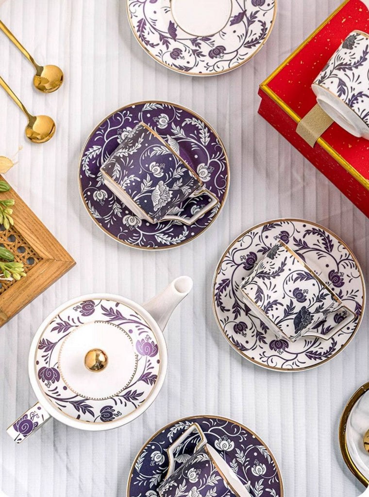 This Tea Cup Set includes 4 Tea Cups, 4 Saucers, 4 Spoons and 1 Teapot
