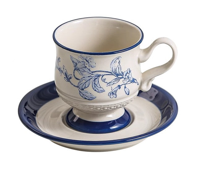 Creative Blue Coffee Cup and Saucer, Elegant Ceramic Cups for Afternoon Tea, Creative Porcelain Tea Cup Set, Beautiful British Tea Cups