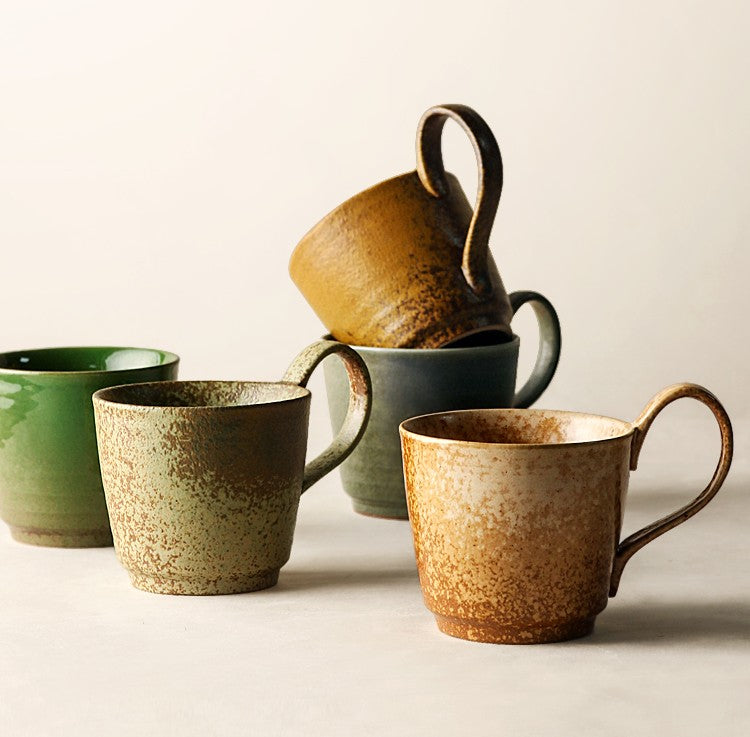 Creative Brown Green Blue Ceramic Coffee Mugs, Large Modern Handmade Pottery Coffee Cup, Large Unique Tea Cup, Large Capacity Coffee Cups-Grace Painting Crafts