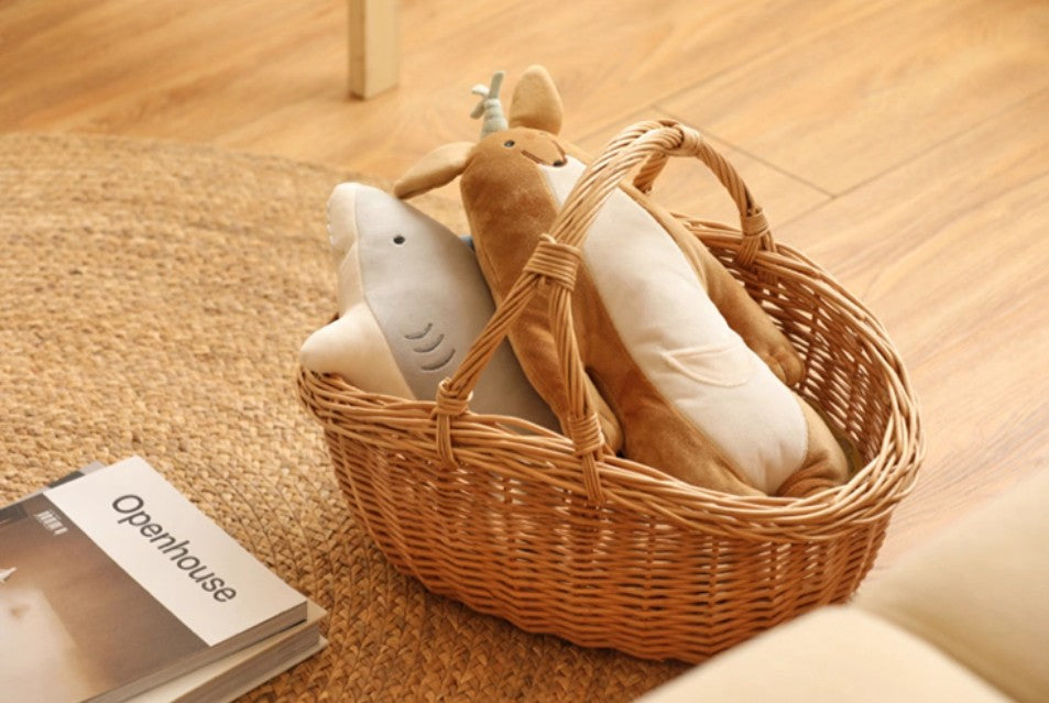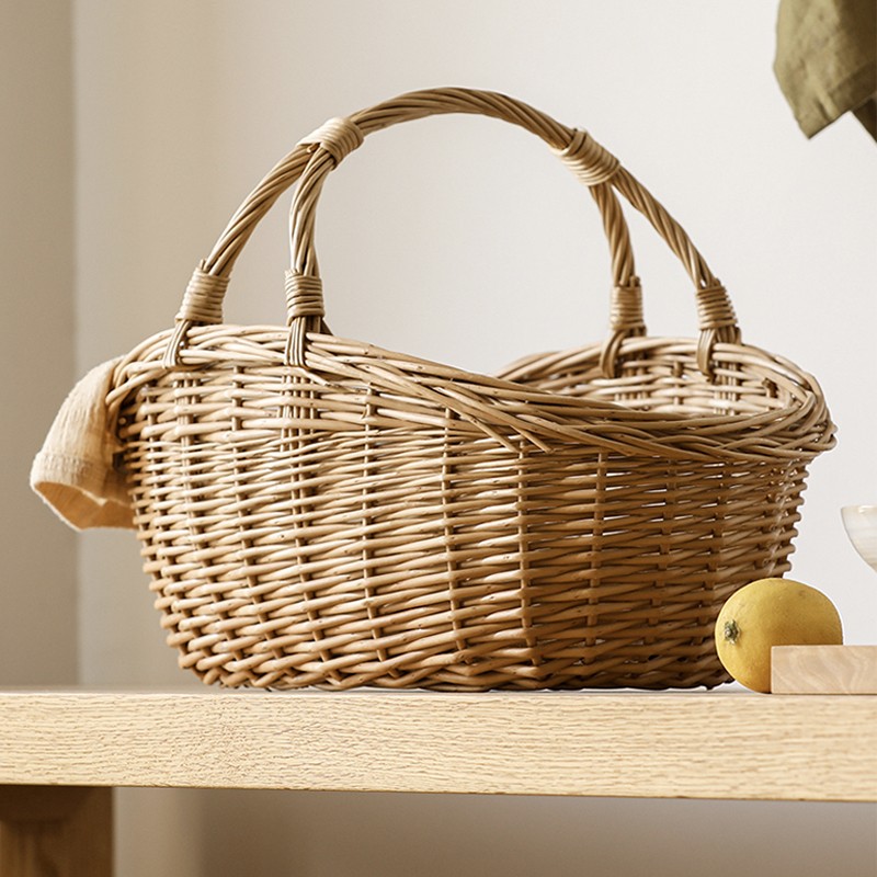Large Kitchen Storage Baskets, Picnic Storage Basket with Handle, Hand-woven Wicker Storage Basket, Willow Weaving Baskets for Vegetable, Natural Fruit Basket-Grace Painting Crafts