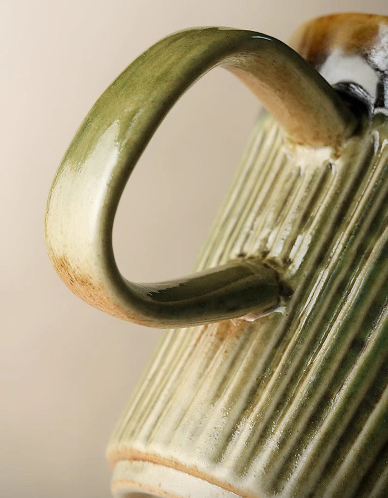 Large Modern Handmade Pottery Coffee Cup, Large Capacity Coffee Mugs, Unique Tea Cup, Creative Brown Green Ceramic Coffee Mugs-Grace Painting Crafts