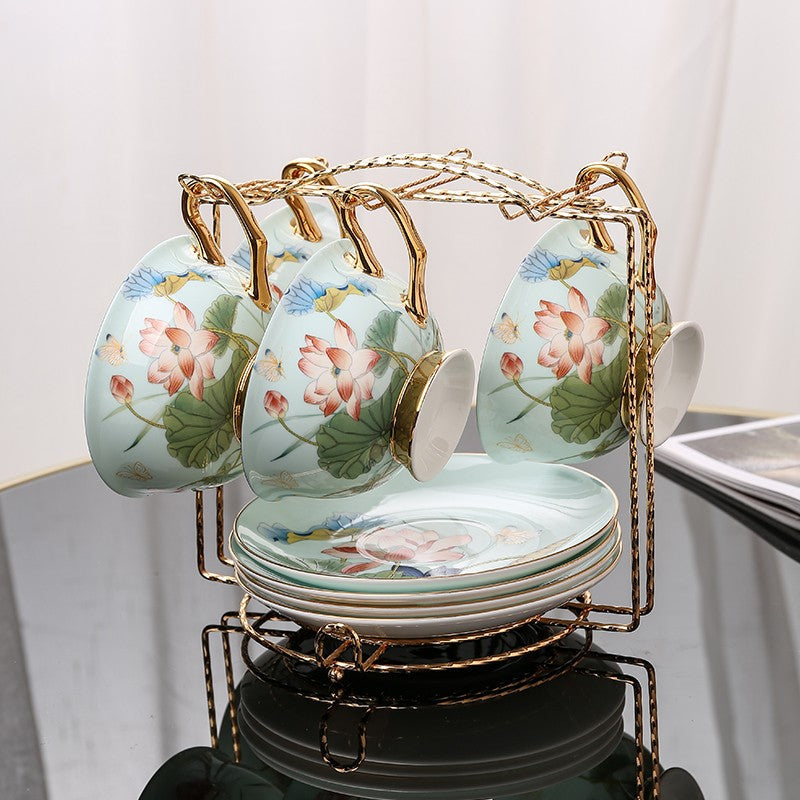 Lotus Flower Bone China Porcelain Tea Cup Set, Unique British Tea Cup and Saucer in Gift Box, Elegant British Ceramic Coffee Cups