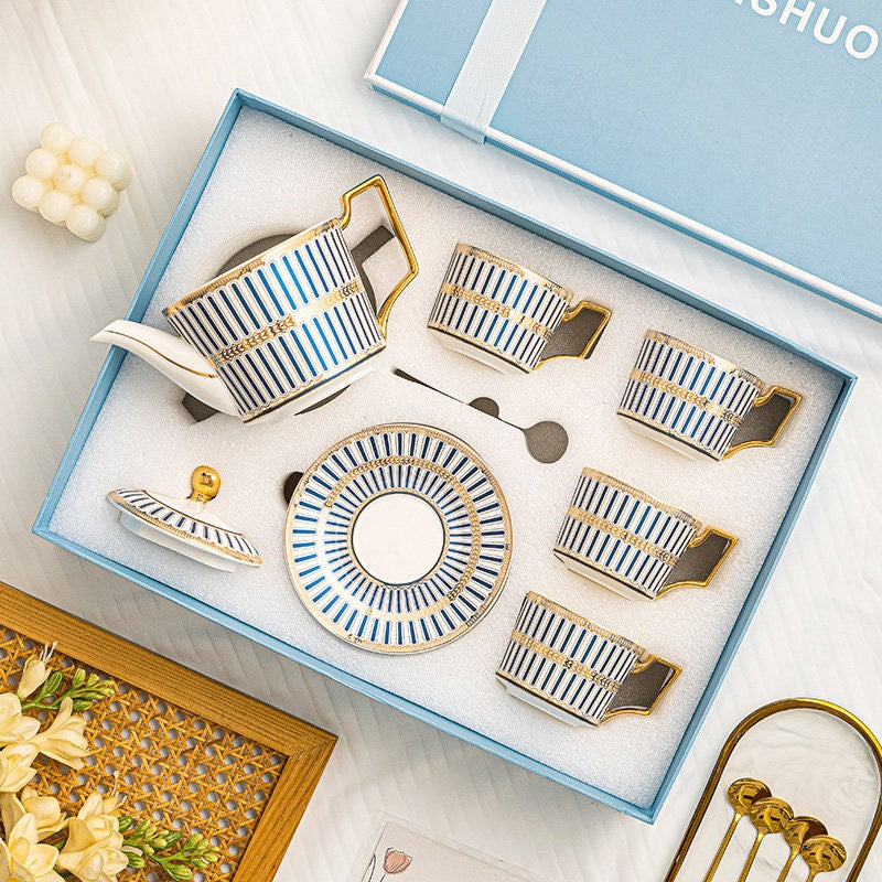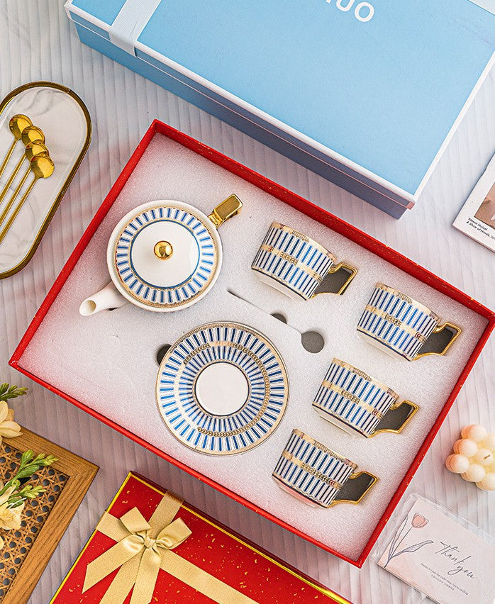 Modern Coffee Cup with Saucer, Ceramic Tea Cup and Saucer Set with Teapot, 7.4 oz Porcelain Tea Cup and Saucer Set of 4 cups, British Tea Cup Set