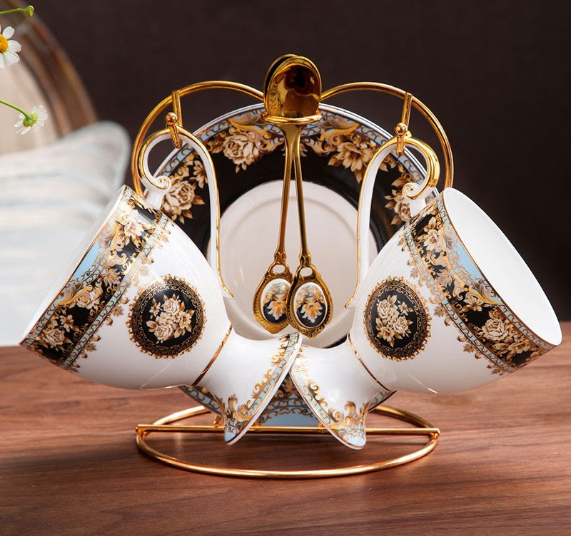 Each set includes 1* coffee cup, 1 saucer and 1 spoon, beautiful ceramic tea cups, perfect for serving espresso, cappuccinos, lattes or tea. It has enough space for coffee with milk bubbles, avoiding spilling.