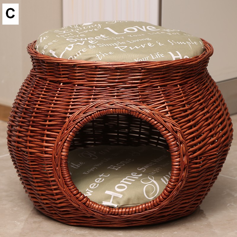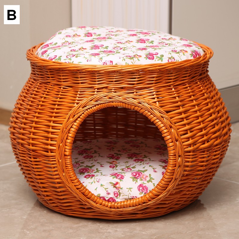 Wicker Cat House Basket with Washable Cushion for Indoor Cats and Dogs, Rattan Cat Bed-Grace Painting Crafts